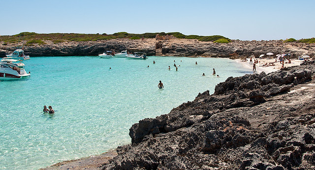 La Cala Mondragó está dentro de un parque natural (Mondragón) en la isla de Mallorca, parte del municipio de Satañy. Una vez más se combinan pequeños acantilados, vegetación de pinos y pequeñas calas bañadas de un mar calmo y turquesa