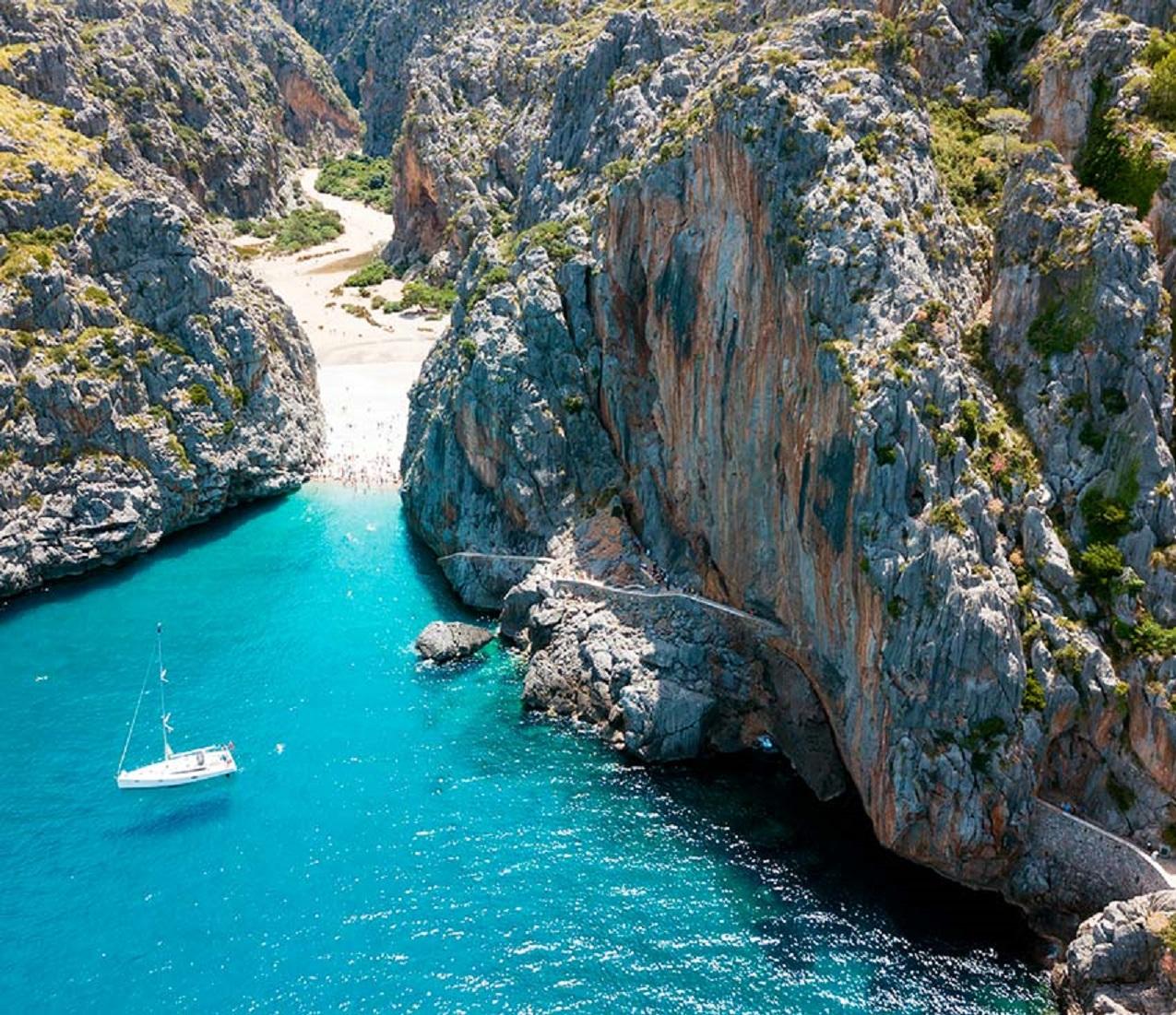 Sa Calobra es una increíble cala escondida a los pies de la Sierra de Tramontana. A la sombra del Puig Major (1.445 metros), el pico más alto de la isla.
